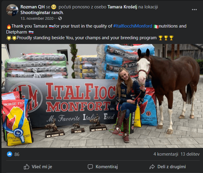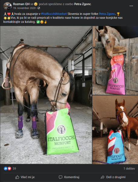Z več kot 40 let izkušenj je ItalFiocchi Monfort simbol varnosti, gotovosti in kvalitete. Skrbna izbira surovin in preprosta tehnologija sta moč naše proizvodnje. V tesnem sodelovanju z našimi strankami in partnerji pozitivno prispevamo k dobremu počutju in zdravju naših živali. ItalFiocchi Monfort je razvil celotno linijo hrane za športne konje, oblikovano, uravnoteženo in integrirano za spremljanje konja od rojstva do začetka njegovih dejavnosti in prav tako do njegove upokojitve.