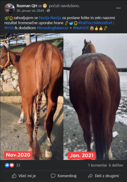 Izkušnje, ki smo jih pridobili v tem obdobju na področju prehranjevanja kopitarjev, so nam še naprej prisotne na trgu z hrano za konje. Hrana je oblikovana in uravnotežena tako, da natančno v celoti zapolni prehranske potrebe različnih faz vzrejanja odraslega in upokojenega konja, tako da zagotovi za različne discipline najbolj primerni izdelek, kjer dobite najboljši izraz atletskega potenciala v vsakem konju.